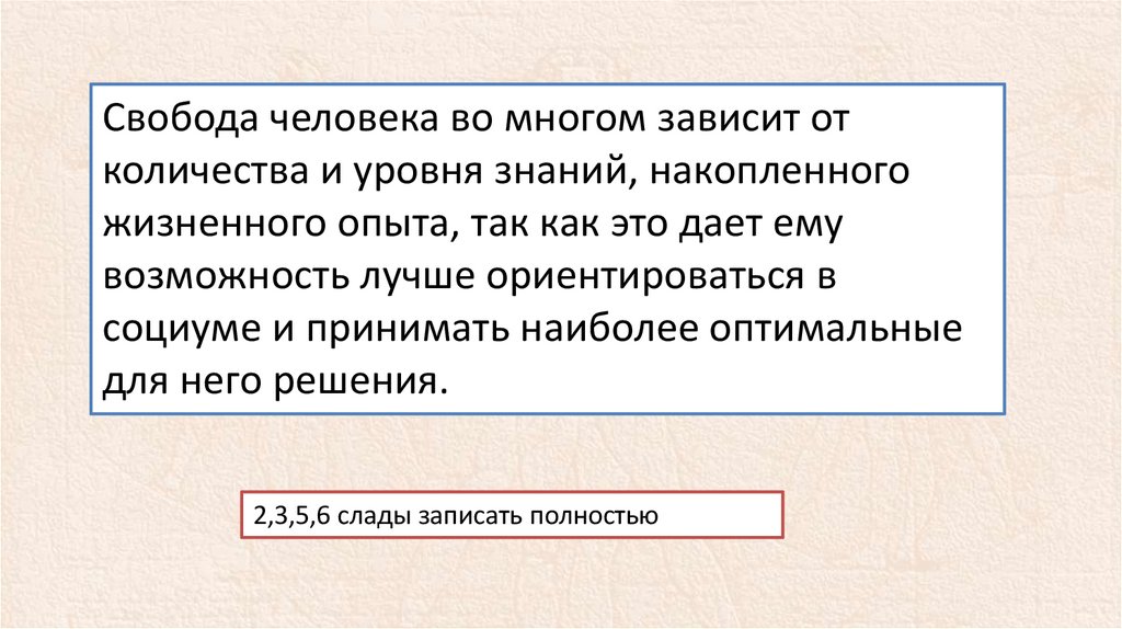 Свобода человека во многом зависит отколичества и уровня знаний, накопленного