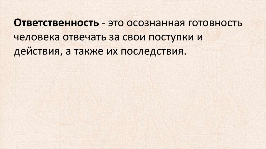Ответственность - это осознанная готовностьчеловека отвечать за свои поступки и