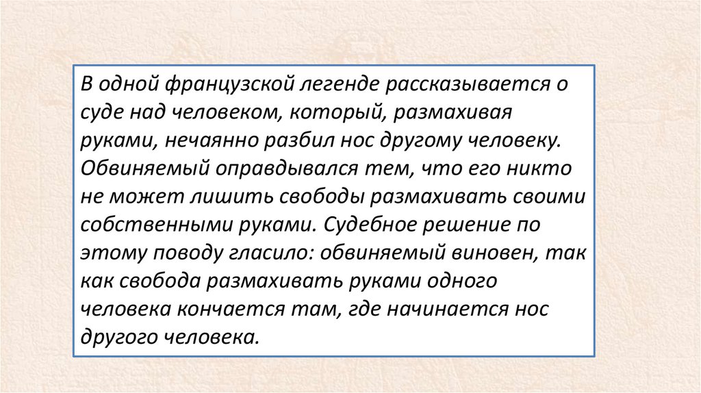В одной французской легенде рассказывается осуде над человеком, который, размахивая