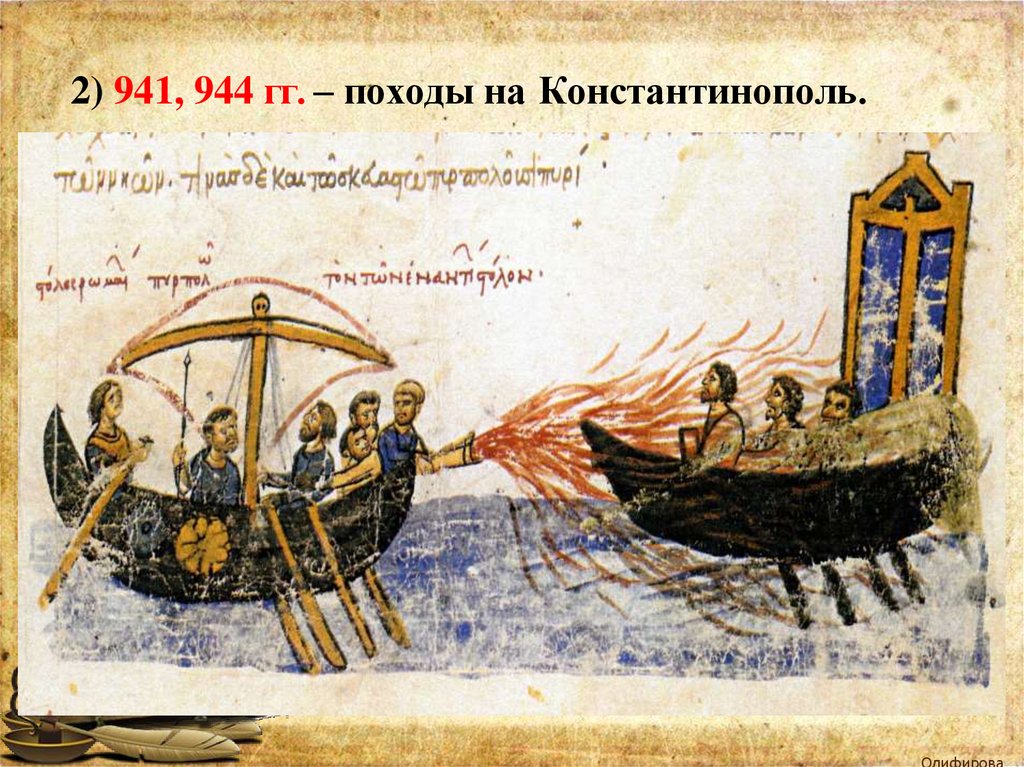 2) 941, 944 гг. – походы на Константинополь.Олифирова