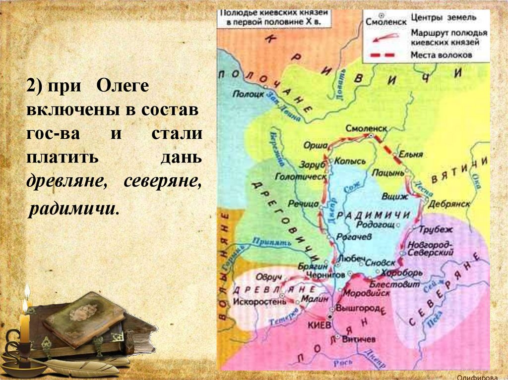 2) при Олегевключены в состав
