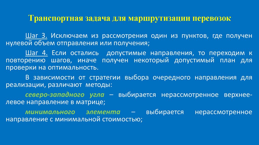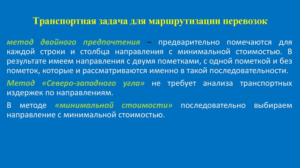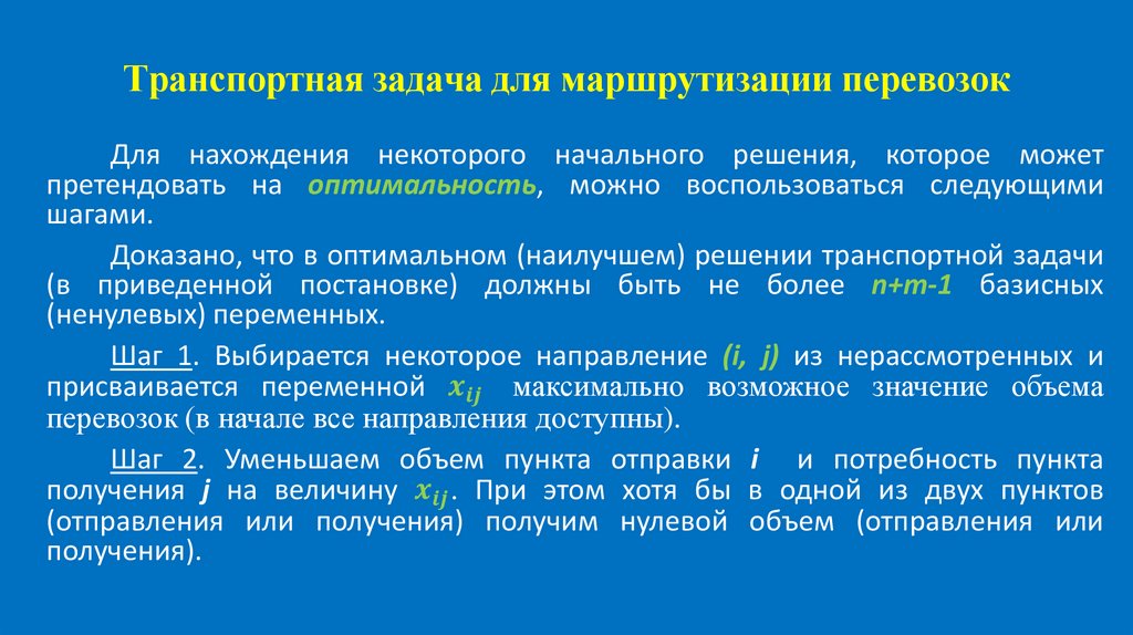 Транспортная задача для маршрутизации перевозокДля нахождения некоторого начального решения, которое может