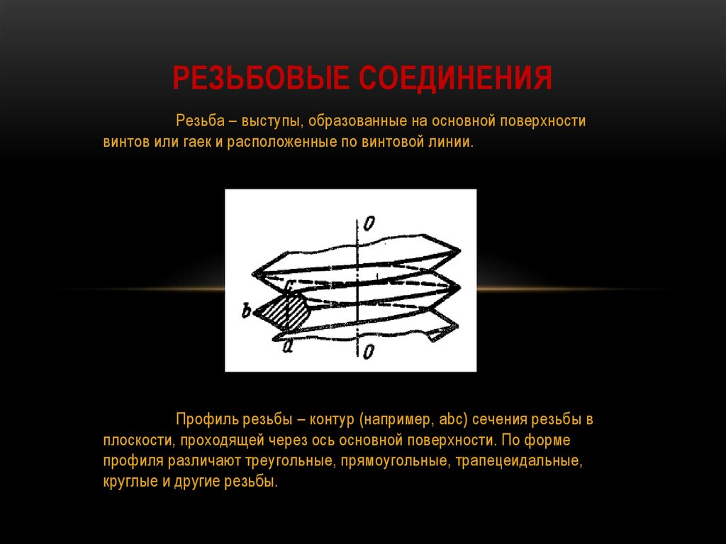 РЕЗЬБОВЫЕ СОЕДИНЕНИЯРезьба – выступы, образованные на основной поверхности