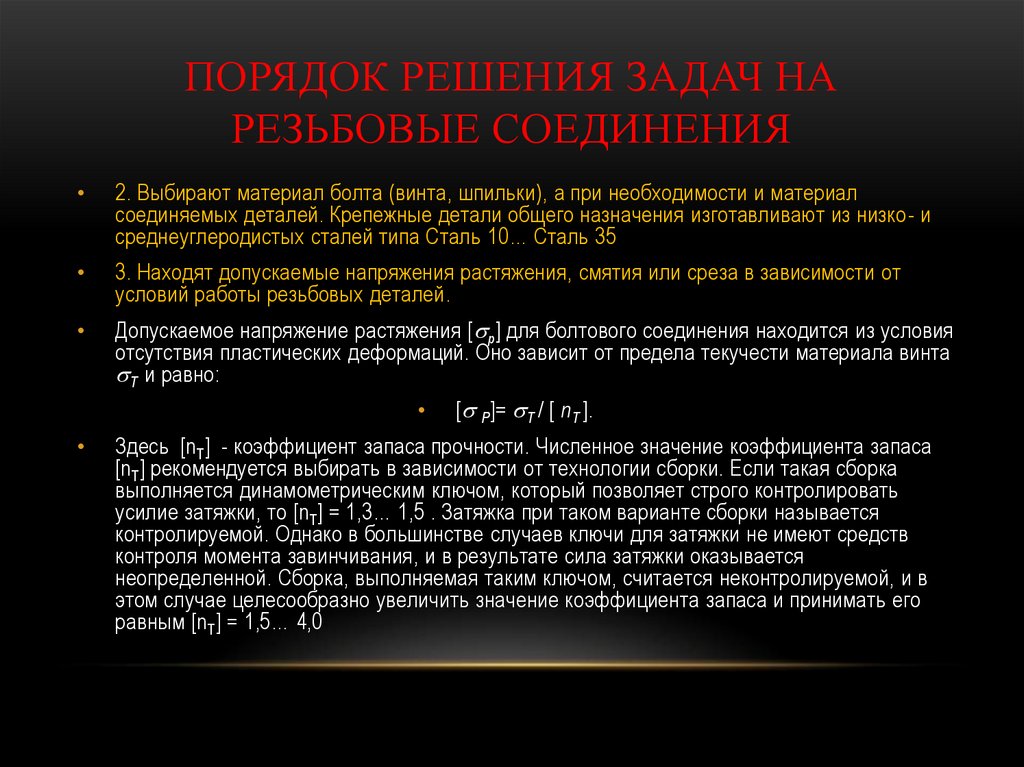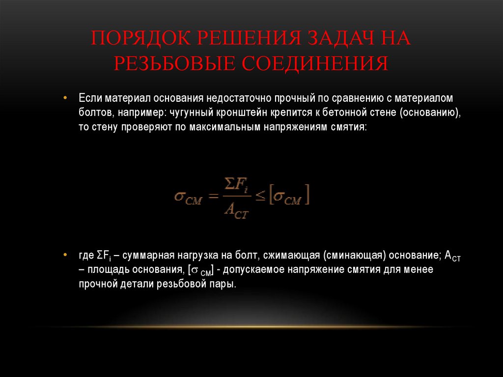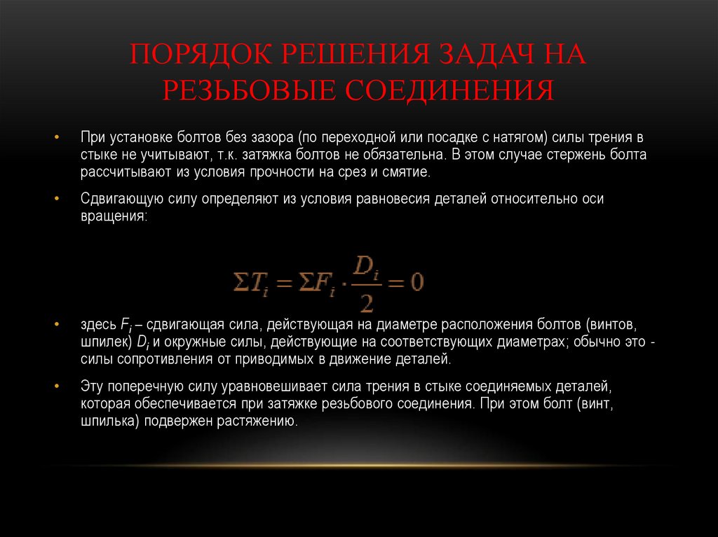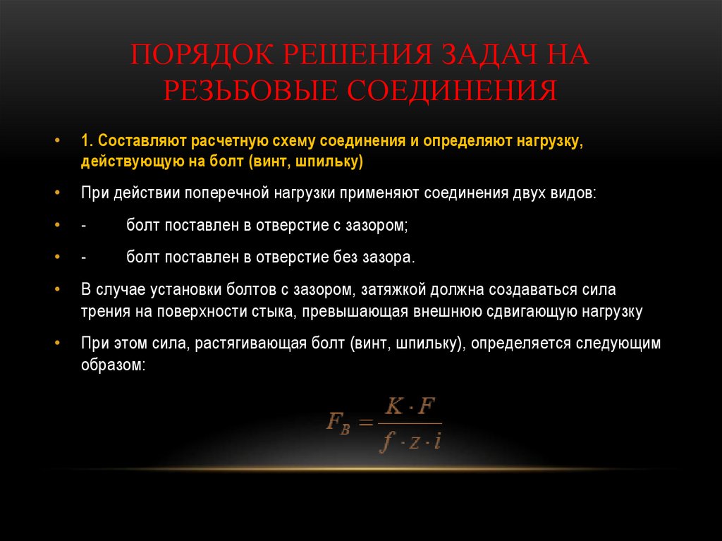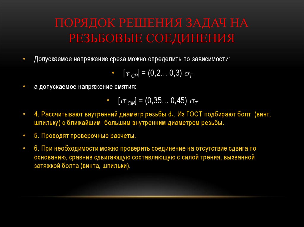 Порядок решения задач на резьбовые соединения