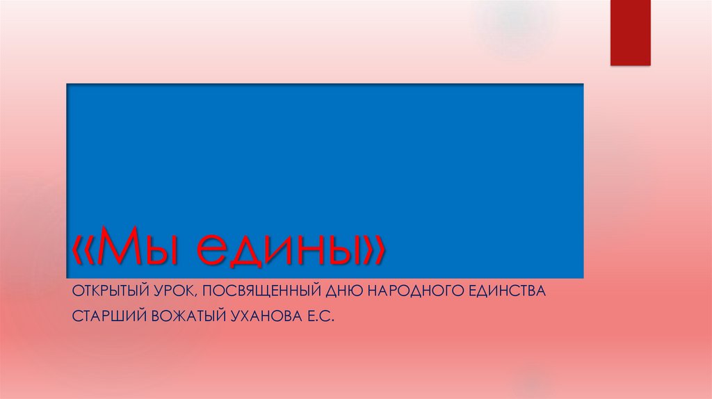 «Мы едины»ОТКРЫТЫЙ УРОК, ПОСВЯЩЕННЫЙ ДНЮ НАРОДНОГО ЕДИНСТВА