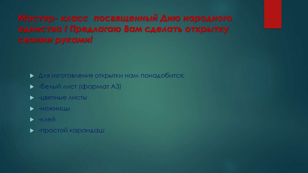 Мастер- класс посвященный Дню народногоединства ! Предлагаю Вам сделать открытку