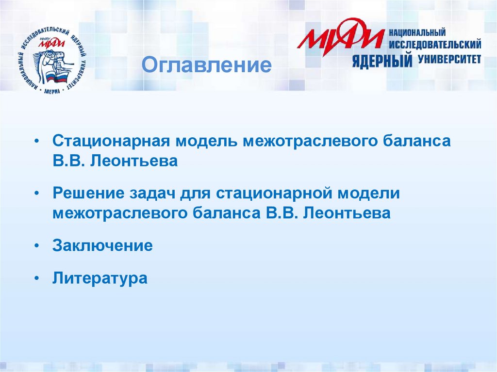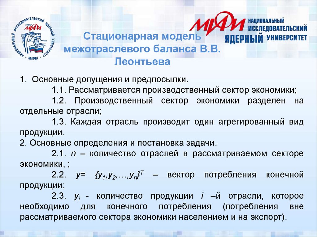 Оглавление• Стационарная модель межотраслевого баланса