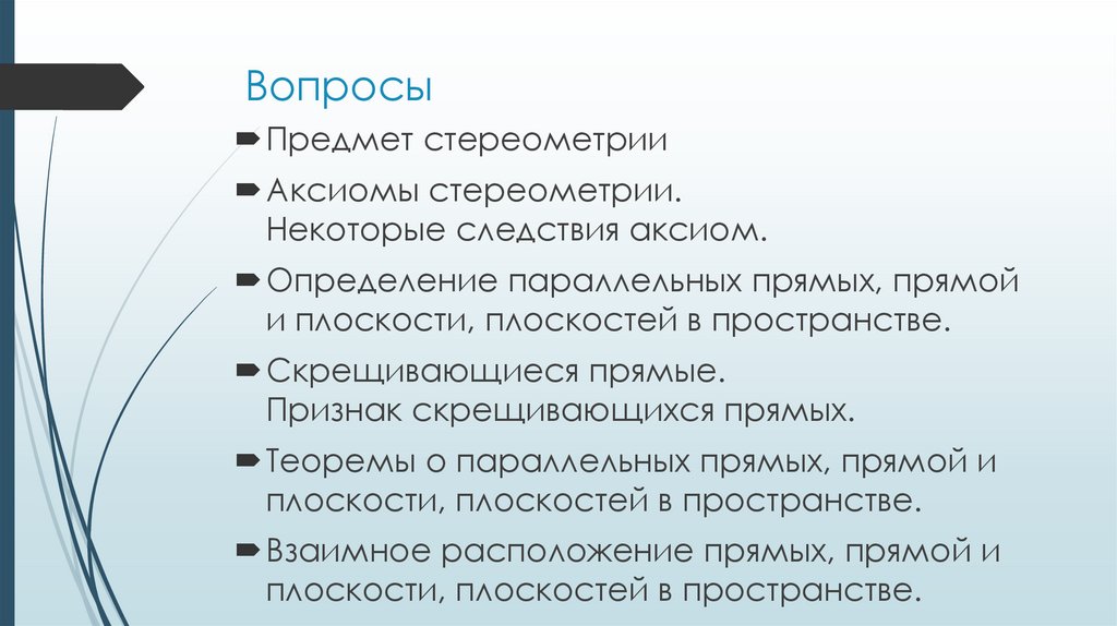 ВопросыПредмет стереометрии