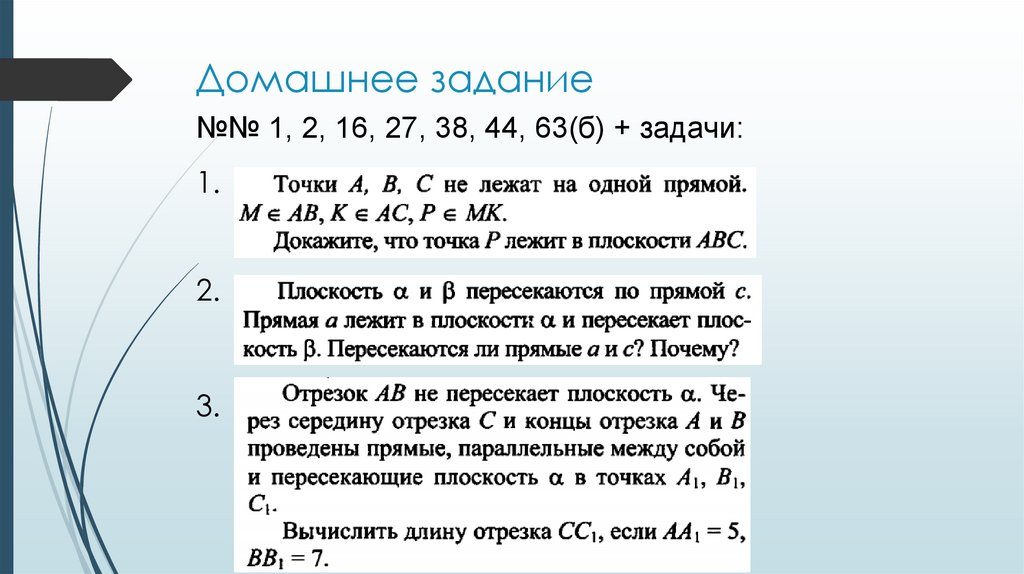 плоскости, плоскостей в пространстве.