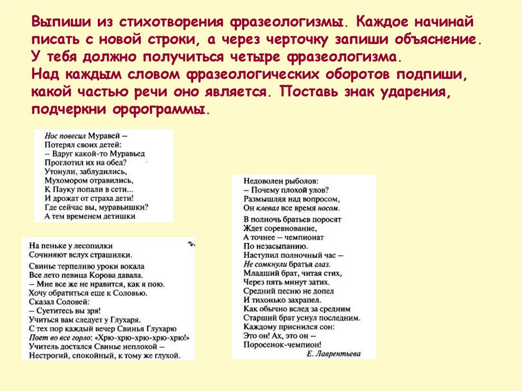 Выпиши из стихотворения фразеологизмы. Каждое начинайписать с новой строки, а через черточку запиши объяснение.