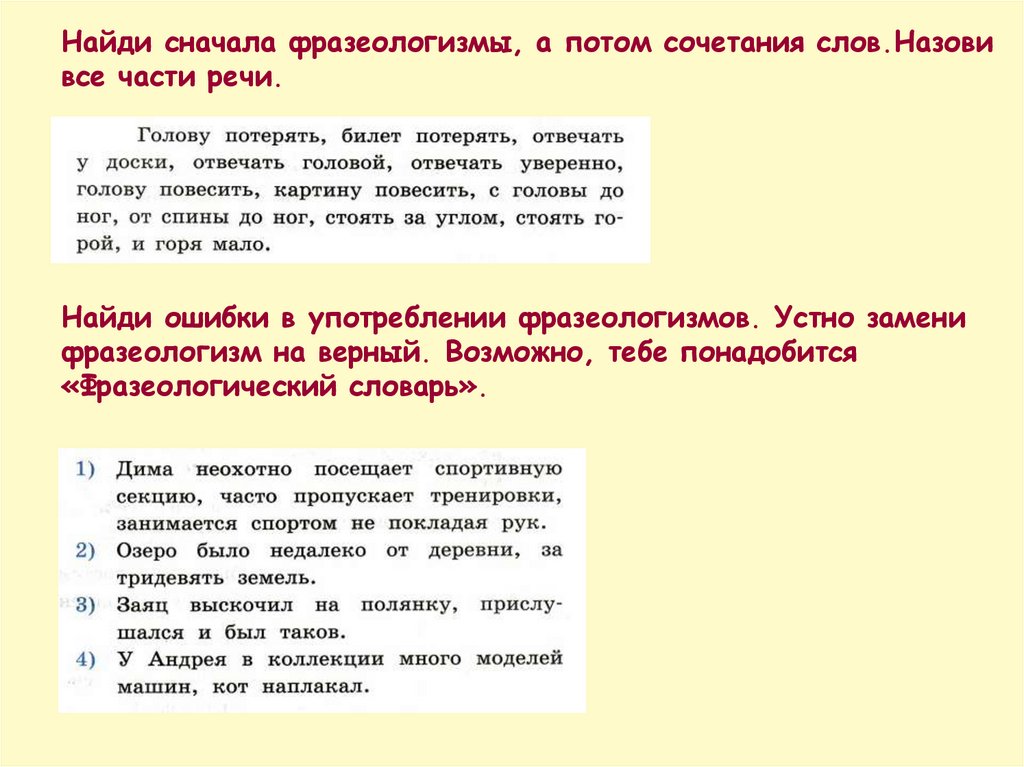 Найди сначала фразеологизмы, а потом сочетания слов.Назовивсе части речи.