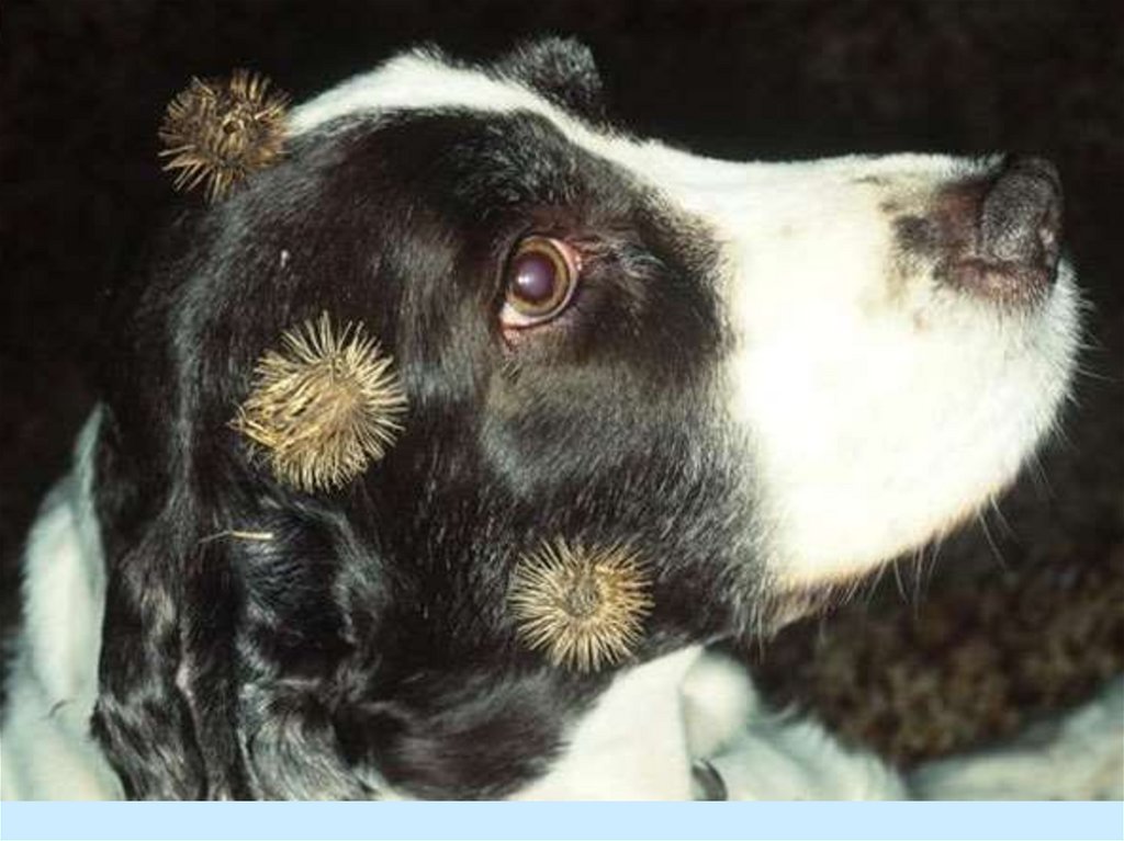 крючки, с их помощью головки цепляются за шерсть животных (например, собак). Так у де