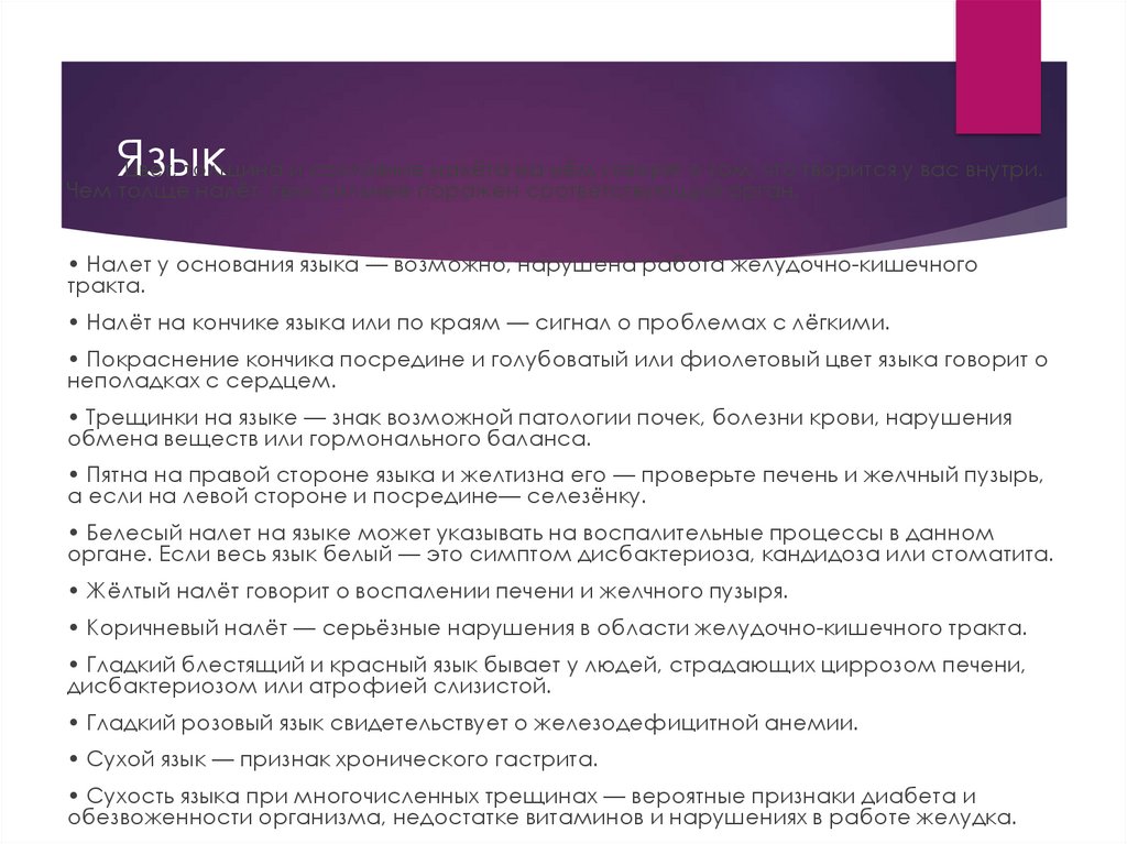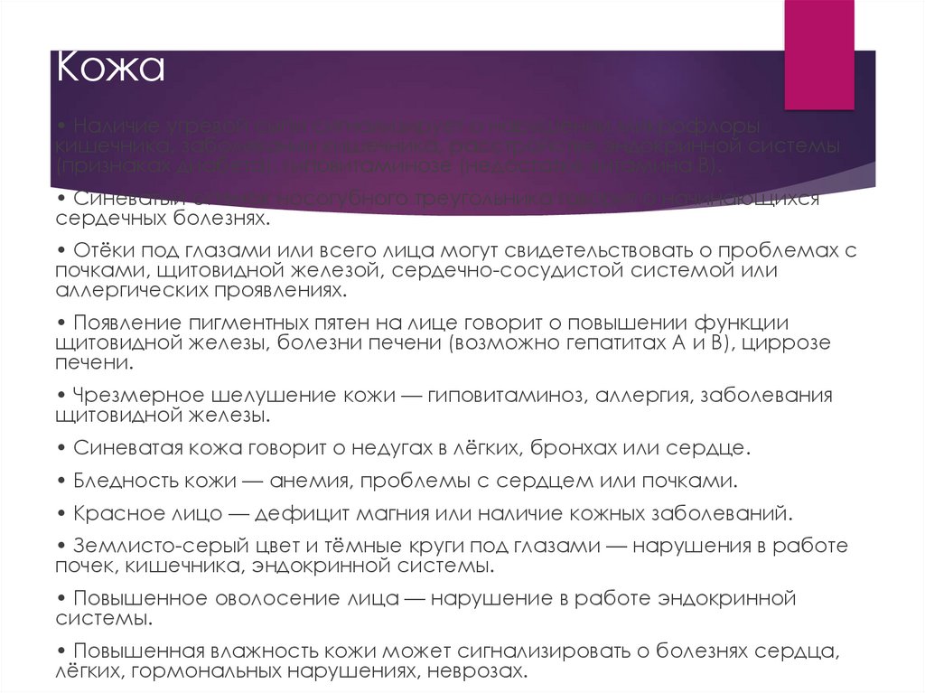 • Синеватый оттенок уведомляет о больном сердце и нарушении кровообращения.