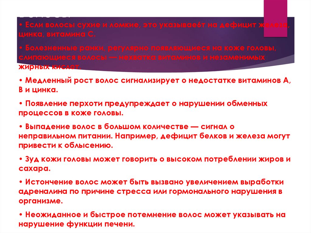 • Медленный рост волос сигнализирует о недостатке витаминов А,