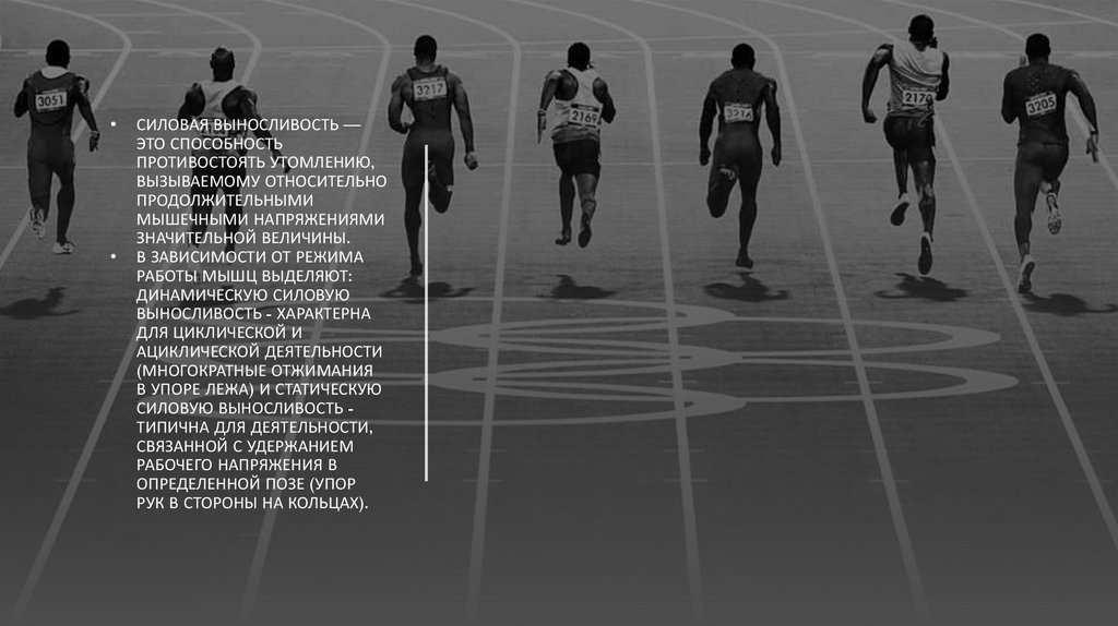 ЭТА СПОСОБНОСТЬ ДЕЛИТСЯ НА ДИНАМИЧЕСКУЮ СИЛОВУЮ ВЫНОСЛИВОСТЬ,