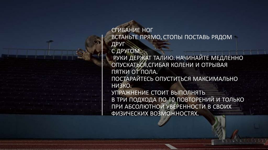 СГИБАНИЕ НОГВСТАНЬТЕ ПРЯМО, СТОПЫ ПОСТАВЬ РЯДОМ