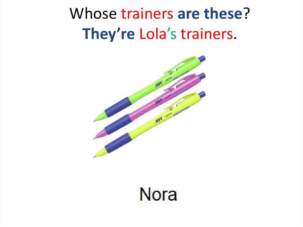 Whose trainers are these?They’re Lola’s trainers.