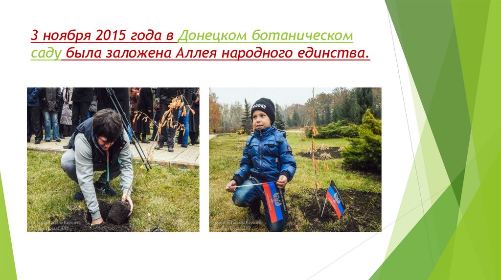 3 ноября 2015 года в Донецком ботаническомсаду была заложена Аллея народного единства.