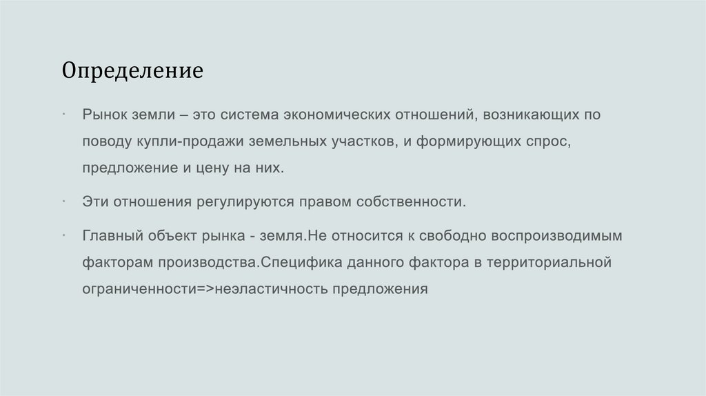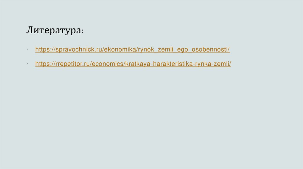 Литература:https://spravochnick.ru/ekonomika/rynok_zemli_ego_osobennosti/