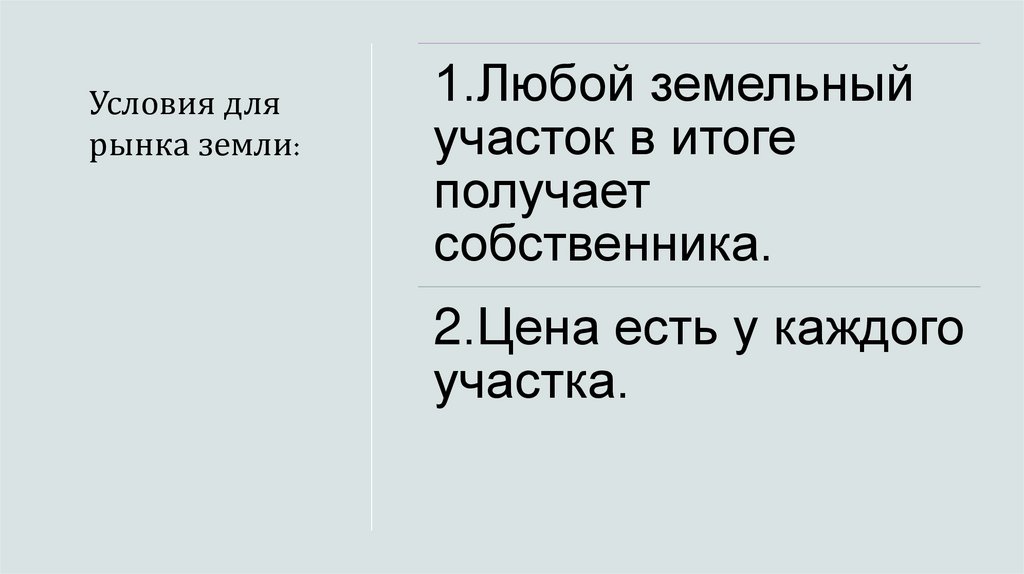 Условия длярынка земли: