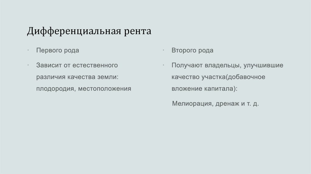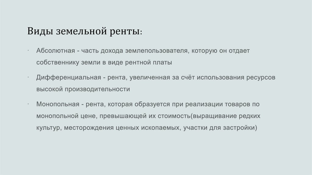 Рента - доход, который получаетсобственник земли от сдачи ее в
