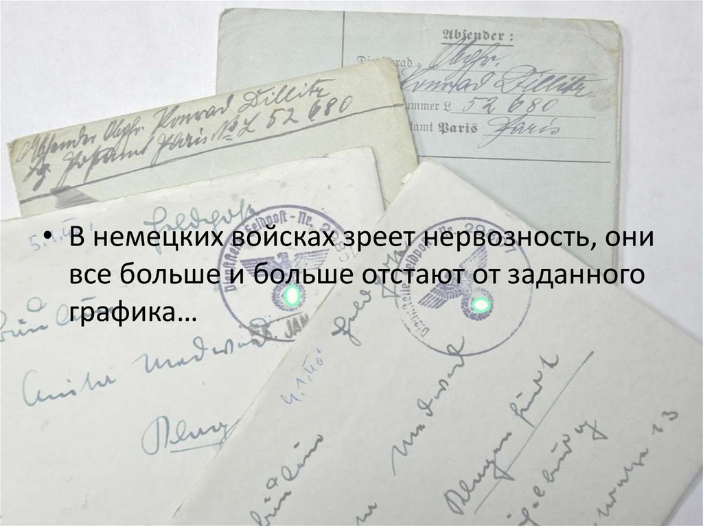 • В немецких войсках зреет нервозность, онивсе больше и больше отстают от заданного