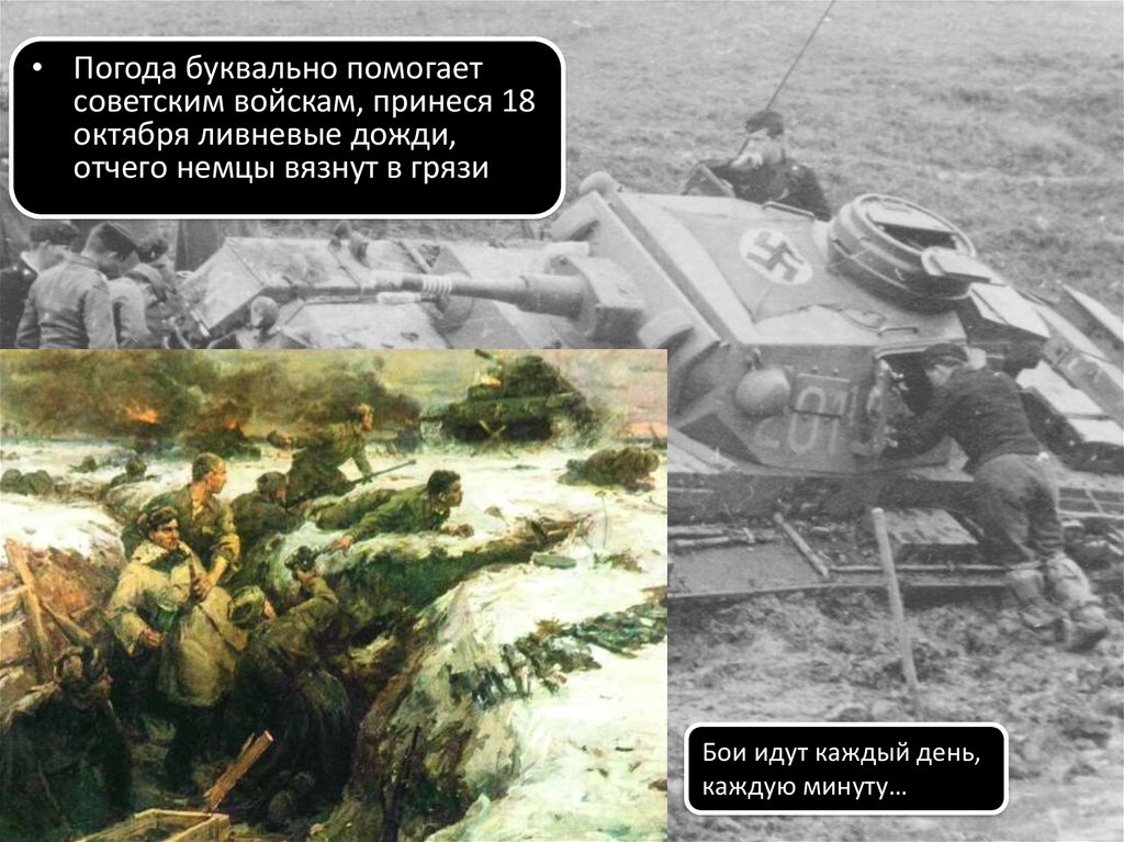 • Погода буквально помогаетсоветским войскам, принеся 18