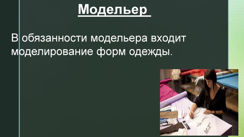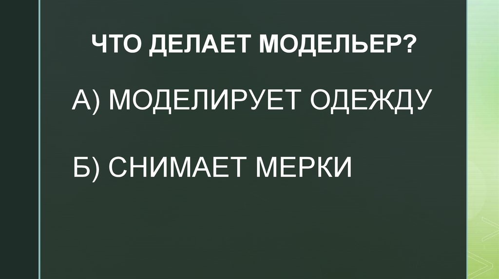 ЧТО ДЕЛАЕТ МОДЕЛЬЕР?А) МОДЕЛИРУЕТ ОДЕЖДУ