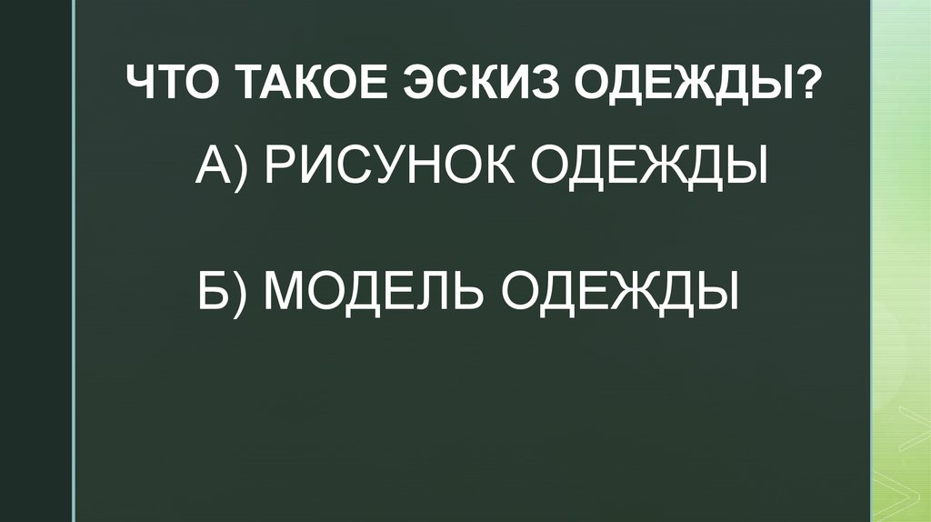 ЧТО ТАКОЕ ЭСКИЗ ОДЕЖДЫ?А) РИСУНОК ОДЕЖДЫ