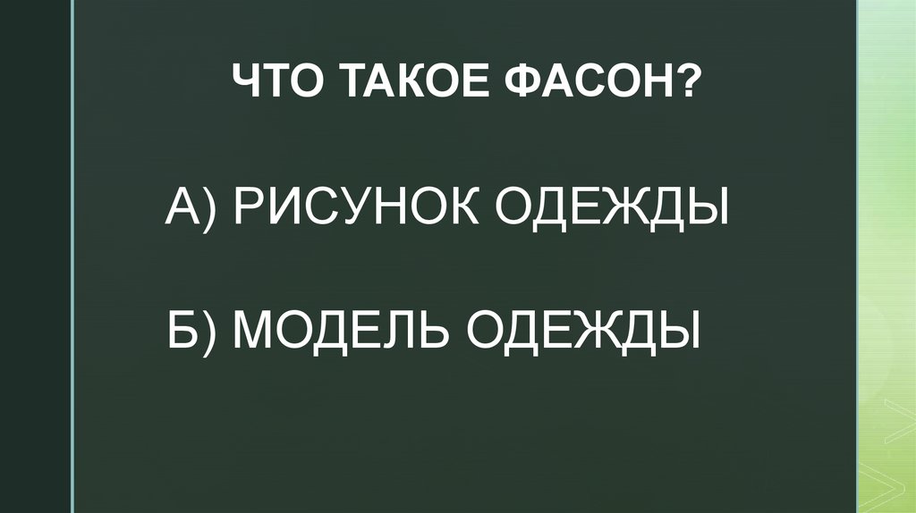 ЧТО ТАКОЕ ФАСОН?А) РИСУНОК ОДЕЖДЫ