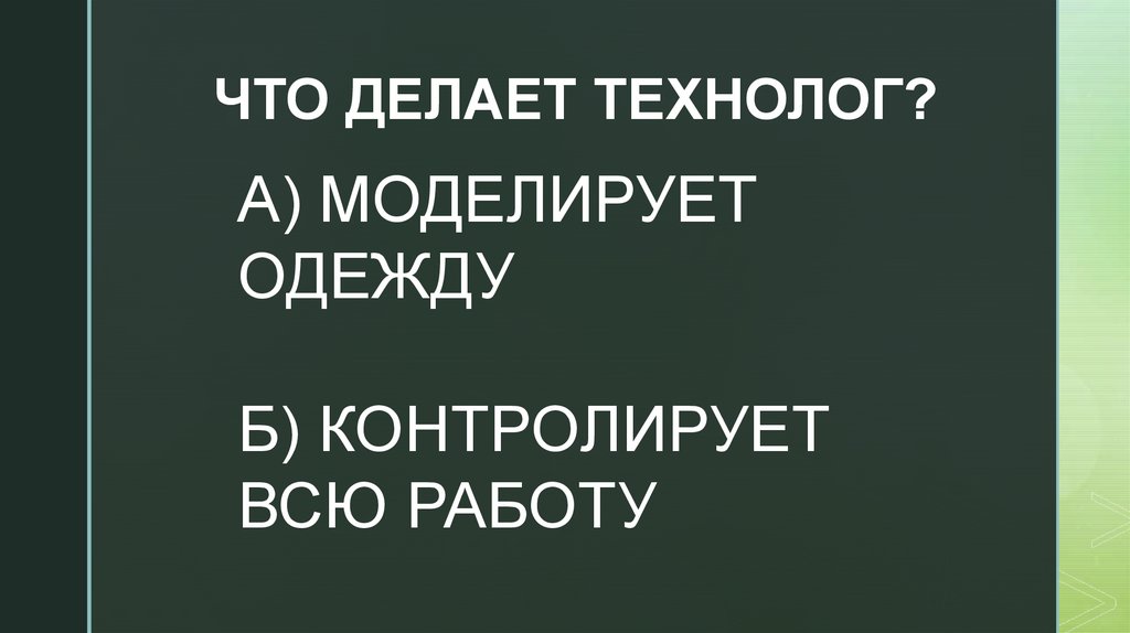 ЧТО ДЕЛАЕТ ТЕХНОЛОГ?А) МОДЕЛИРУЕТ