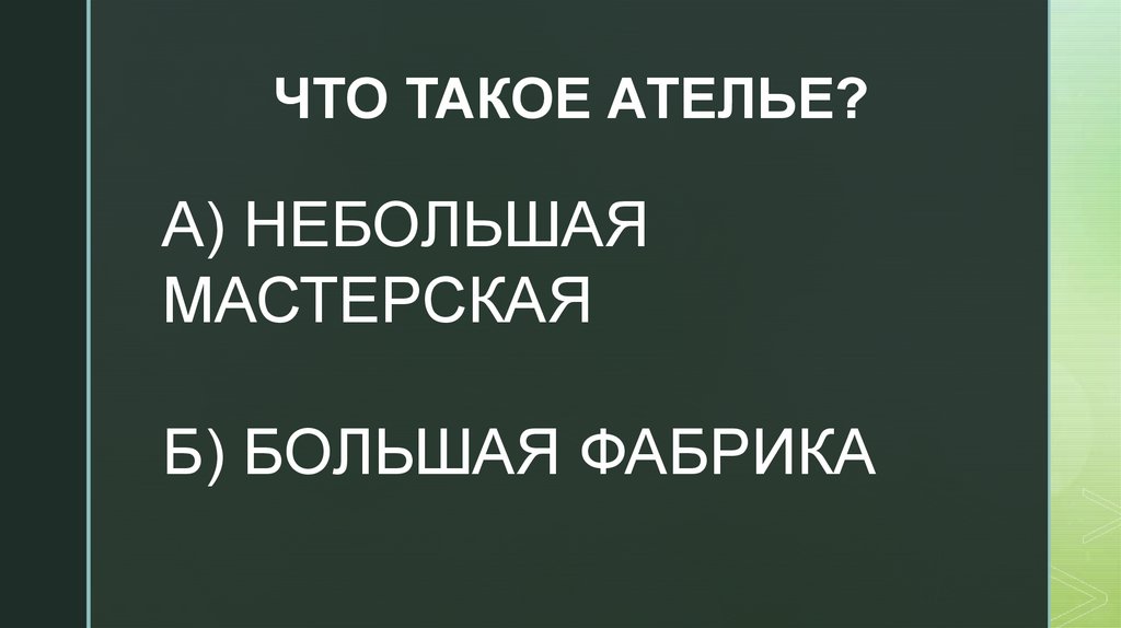 ЧТО ТАКОЕ АТЕЛЬЕ?А) НЕБОЛЬШАЯ