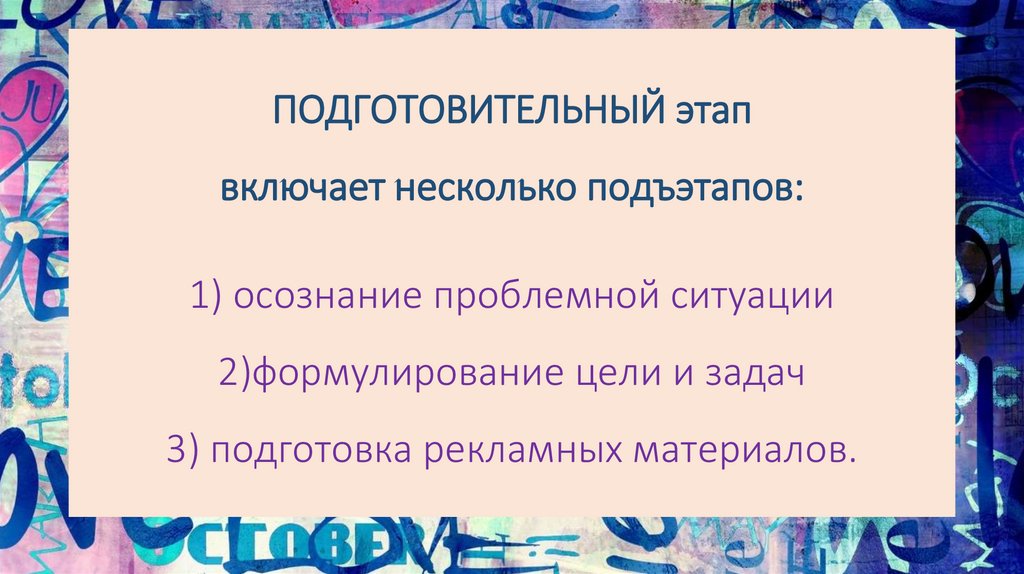 ПОДГОТОВИТЕЛЬНЫЙ этапвключает несколько подъэтапов: