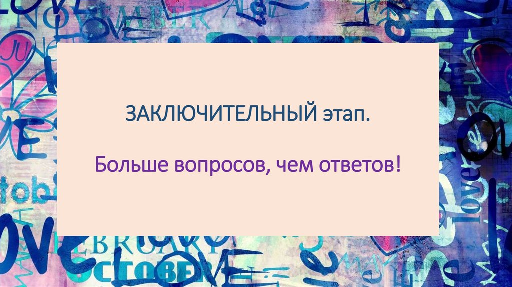 ЗАКЛЮЧИТЕЛЬНЫЙ этап.Больше вопросов, чем ответов!