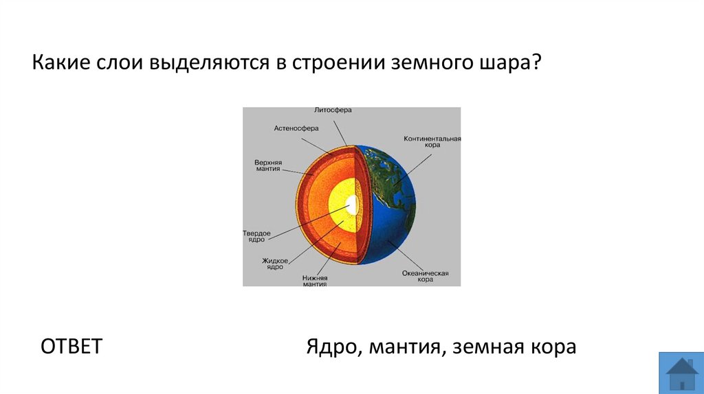 Какие слои выделяются в строении земного шара?ОТВЕТ