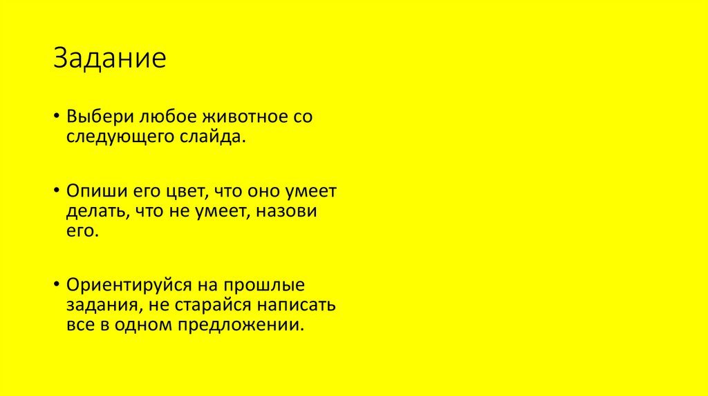 Задание• Выбери любое животное со