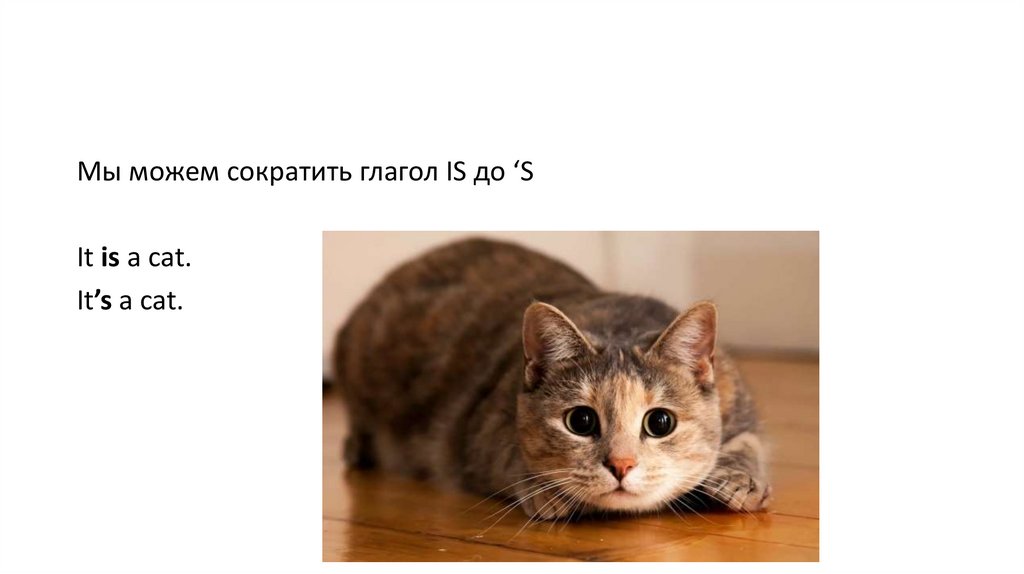 Мы можем сократить глагол IS до ‘SIt is a cat.
