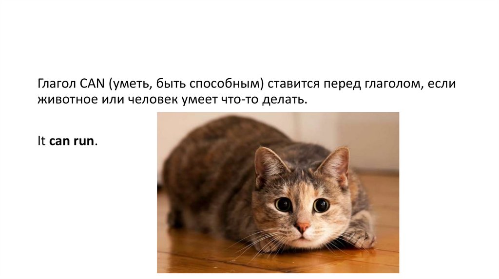Глагол CAN (уметь, быть способным) ставится перед глаголом, еслиживотное или человек умеет что-то делать.