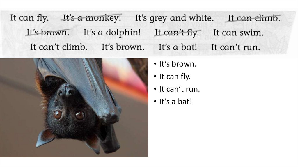 • It’s brown.• It can fly.