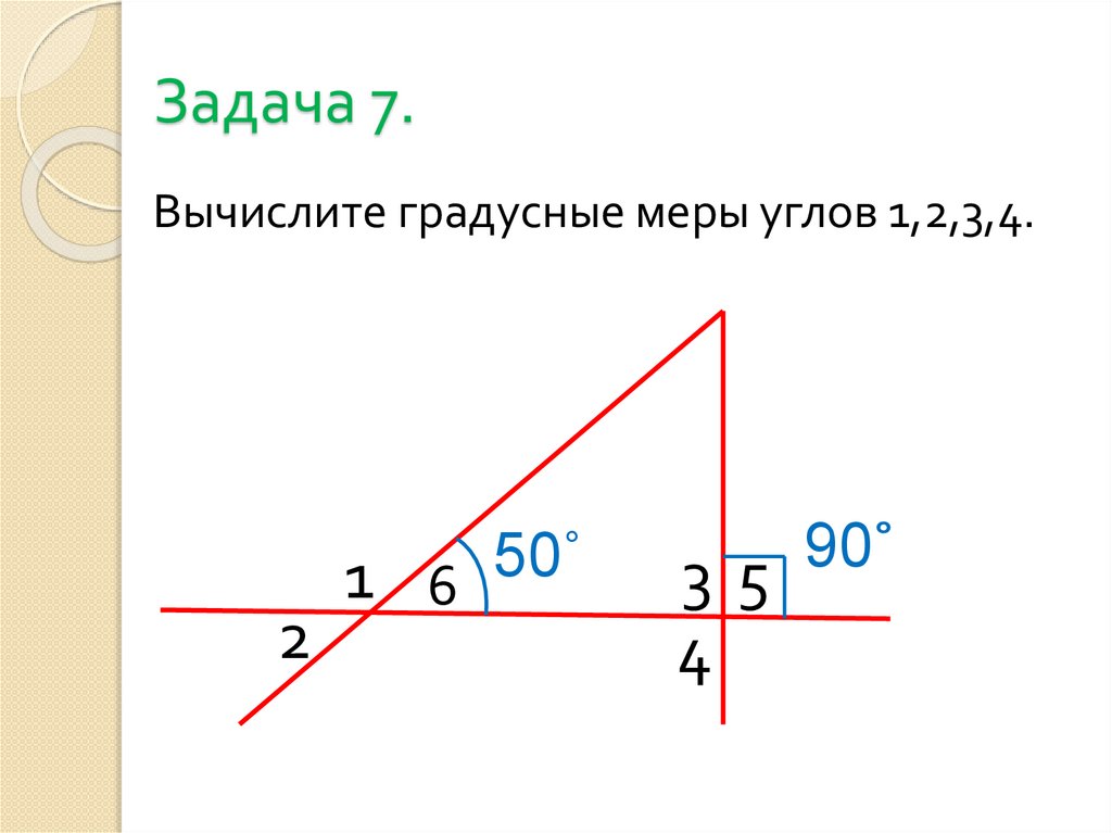 Задача 7.Вычислите градусные меры углов 1,2,3,4.
