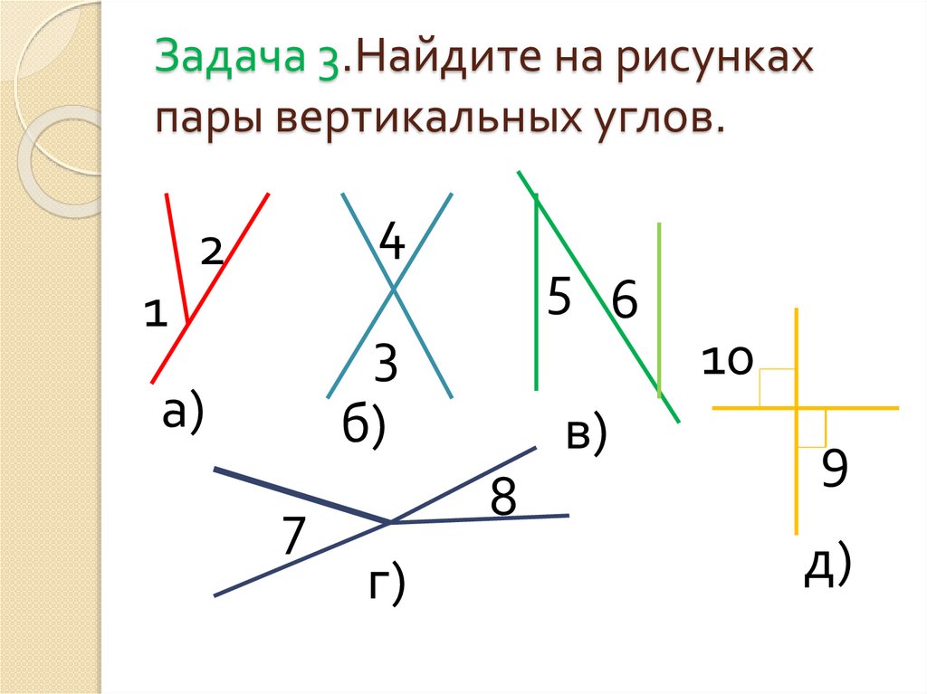 Задача 3.Найдите на рисункахпары вертикальных углов.