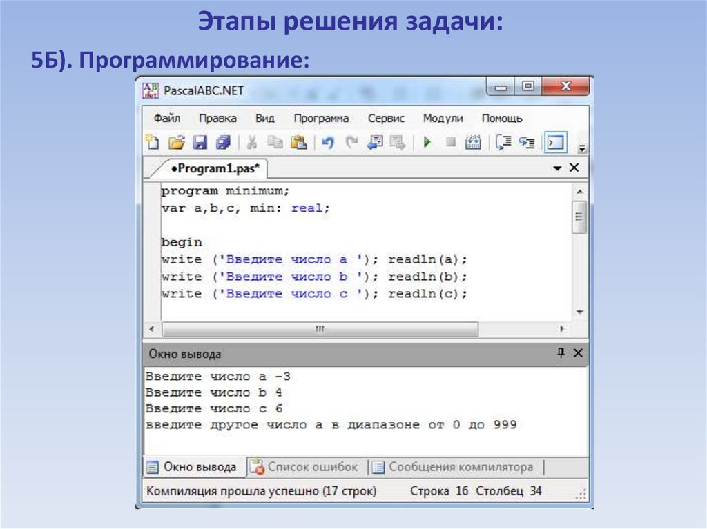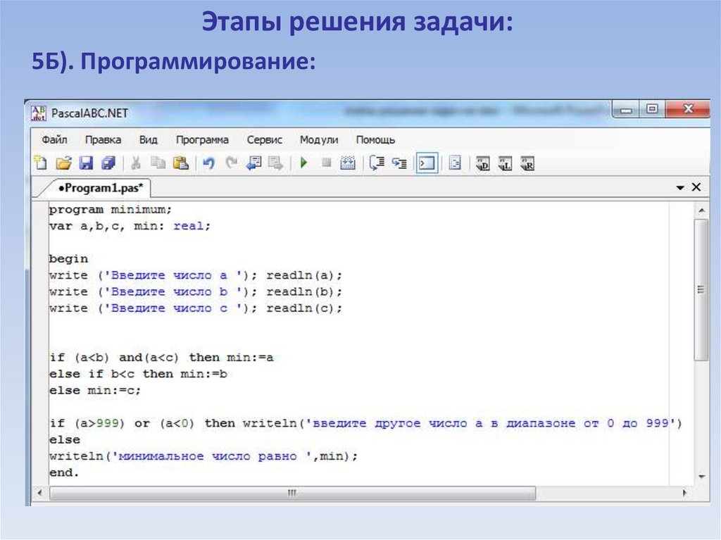 Этапы решения задач на компьютере. Язык программирования Паскаль