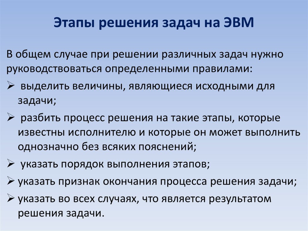 Этапы решения задач с