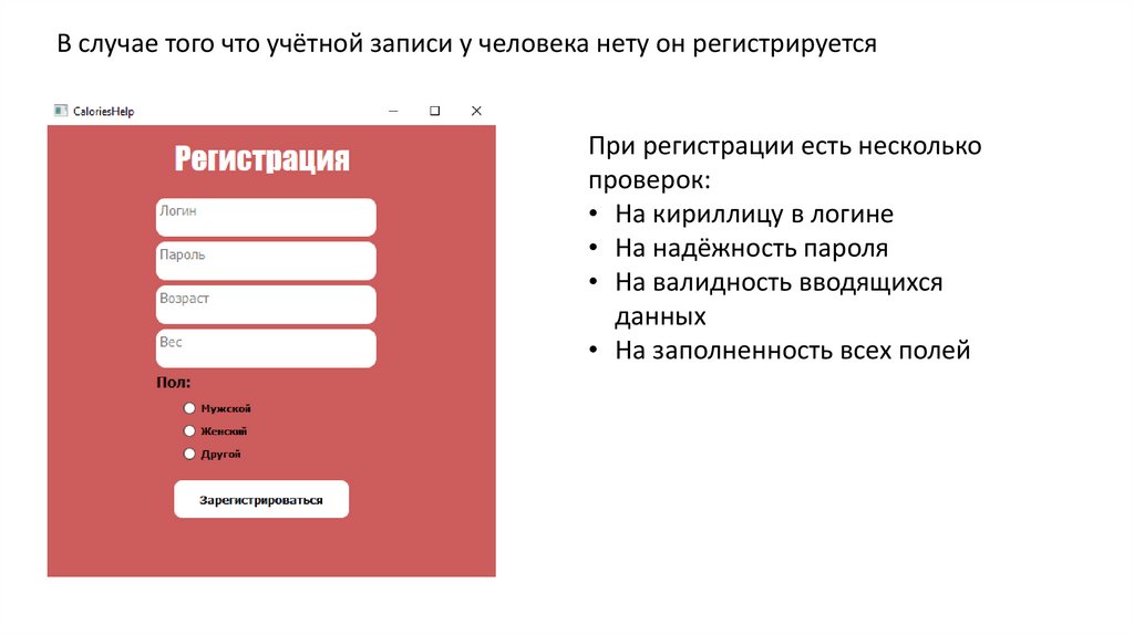 Calories HelpВыполнил Кузьмин Павел