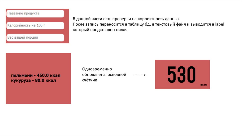В данной части есть проверки на корректность данныхПосле запись переносится в таблицу бд, в текстовый файл и выводится в label