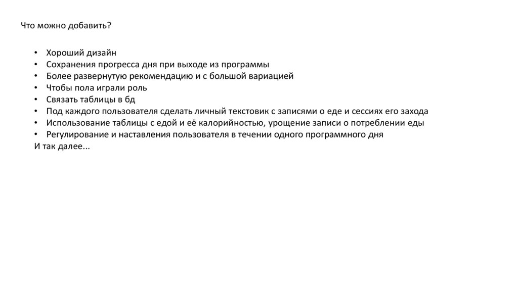 • Под каждого пользователя сделать личный текстовик с записями о еде и сессиях его захода