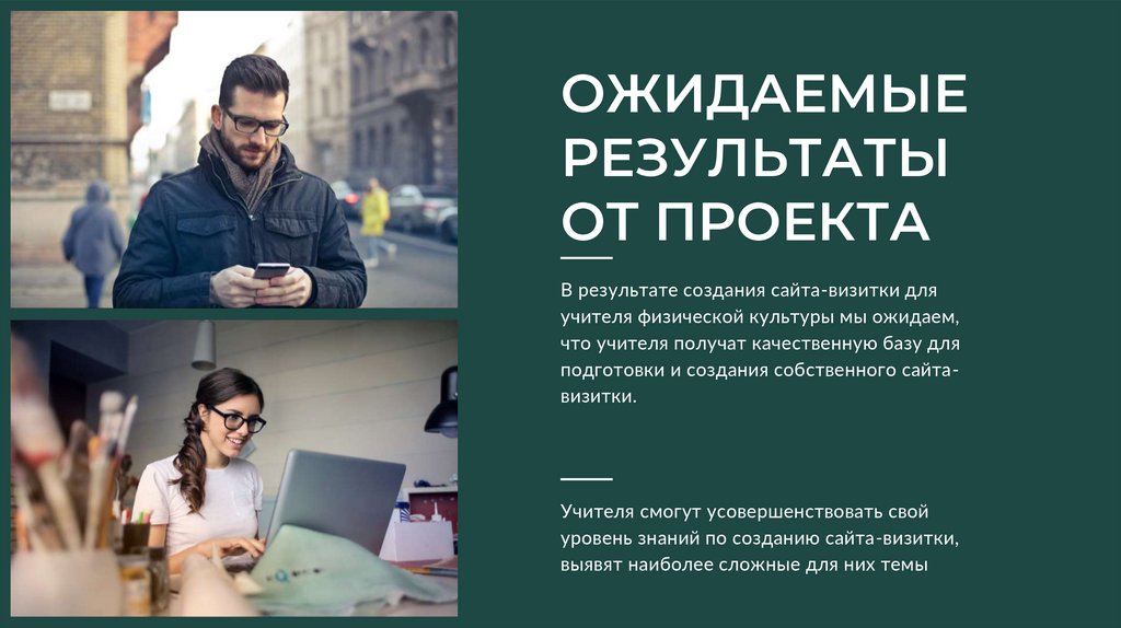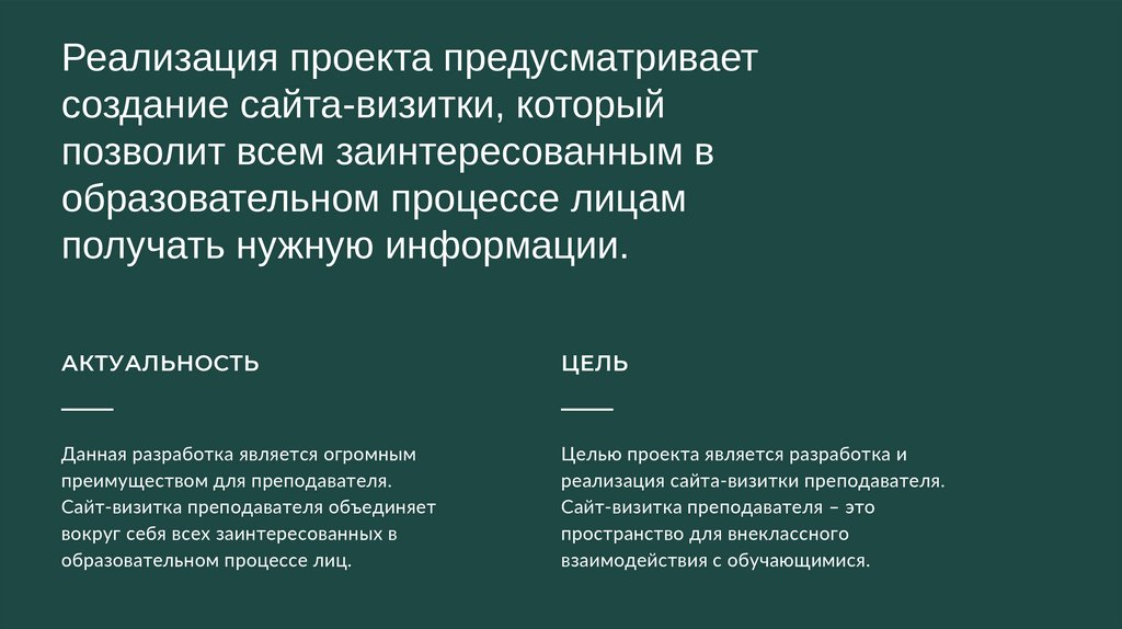 Реализация проекта предусматриваетсоздание сайта-визитки, который