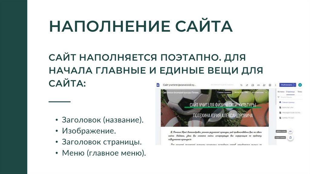 4. Нами разработан вариант сайта-визитки для учителя физической культуры с