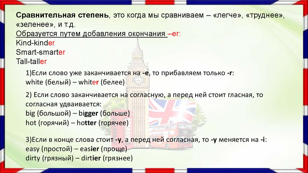big (большой) – bigger (больше)