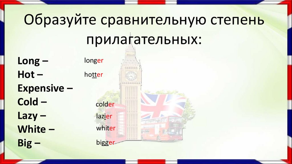 hot (горячий) – hotter (горячее)